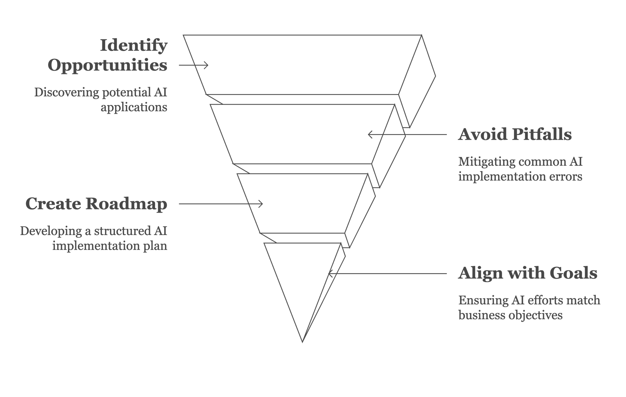 We focus on setting the right foundation, understanding where you are as a business, and preparing your organization to begin or accelerate your AI journey.